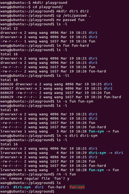 如果先删除文件, 则会成为坏链接(broken), ls会以不同颜色(Ubuntu, 红色)显示;