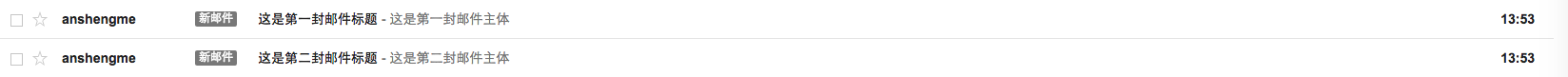 In [1]: message1 = ("这是第一封邮件标题", "这是第一封邮件主体", 'anshengme@sina.com', ['ianshengme@gmail.com'])