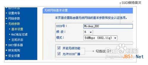 1、首先是路由器的注意事项,开启无线功能和允许SSID广播、SSID不能是中文的,方法如下图: