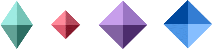 2、用四个这样的三角形拼成棱形,并依次填充由浅到深的同色相颜色。