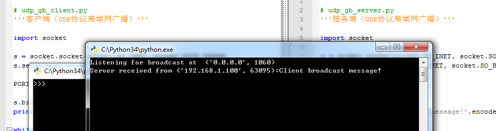 以上就是跳跃书本最近收集整理的关于Python+Socket实现基于UDP协议的局域网广播功能示例的全部内容,更多相关Python+Socket实现基于UDP协议内容请搜索靠谱客的其他文章。