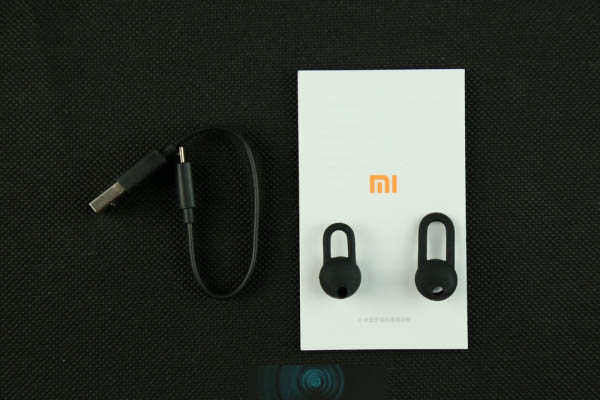 包装内的配件很简单,一根短的micro-USB线,另外附送的两个不同大小的硅胶套,一份简单的说明书。