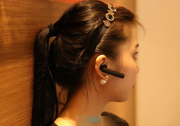 小米蓝牙耳机的佩戴演示。从实际使用中来看,小米蓝牙耳机的通话声音清晰,佩戴也较为舒适,仅6.5克的重量也非常适合长时间佩戴。