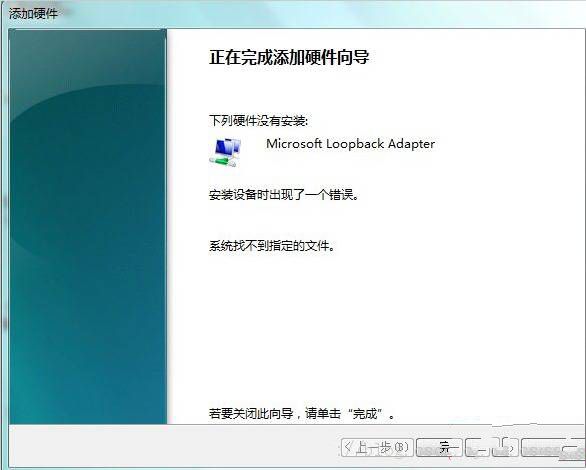 如果不成功,则会显示Microsoft Loopback Adapter安装找不到指定文件。