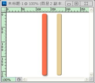 3、圆角矩形工具,固定大小,宽度17,高度210,半径5,选纹理合适的位置画路径,见图1。路径转换成选区,拷贝出来一条,删除图层1;