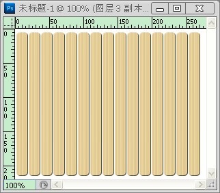 5、选中黄色的条条,移动到画布左边,复制-自由变换(为了方便观察移动的位置,ctrl+h隐藏定界框)-向右移动,两条之间留1像素距离,提交。三键加T至满画布,合并所有的黄色条条图层,见图3,再复制2个相同的图层,把3个图层按左、中、右接在一起,成为一个图层,图层名称为:多板;