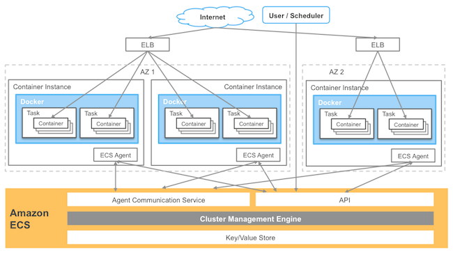 在ECS发展过程中,亚马逊优先发展在同一个集群中,针对基于用户需求的任务自动伸缩冗余性,本地跨越可用区域(AZs)的能力,当ECS服务调度启动新的任务时,它也会尝试通过集群中的AZs自动平衡这些任务。