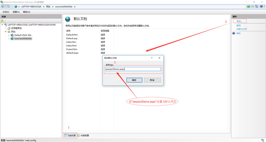 12、测试。在浏览器地址栏输入:”http://localhost:8090/sessionDemo.aspx“,访问。