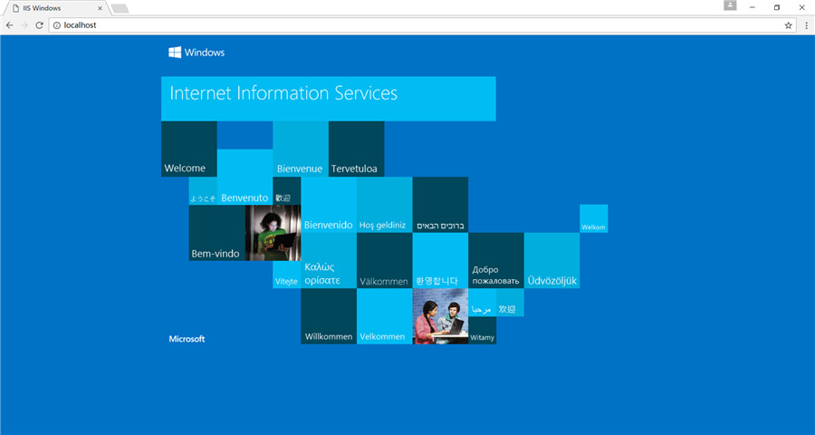 6、重启电脑后,测试IIS配置是否成功。在浏览器栏,输入“http://localhost”,若出现如下界面,则表示IIS安装成功。