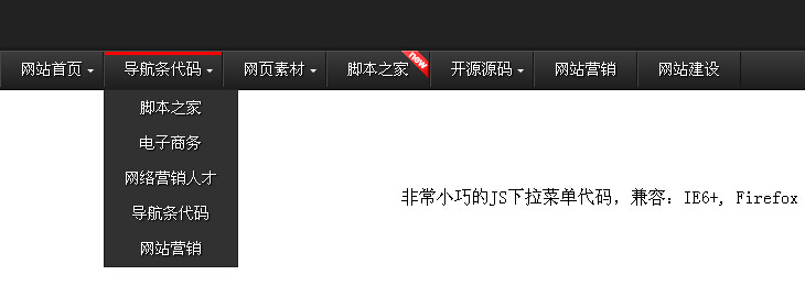 <p><p>非常小巧的JS下拉菜单代码,兼容:IE6+, Firefox 1.5+, Opera 8+, Safari 3+, Chrome 0.2+</p></p>