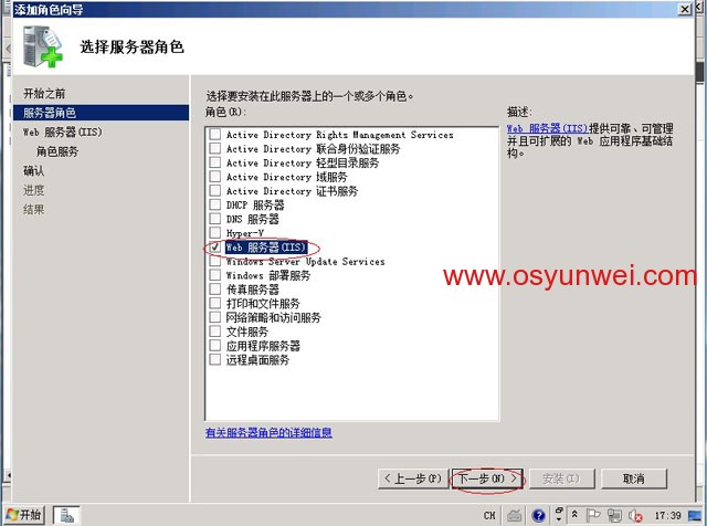 确保“CGI”被选中,其他的角色服务可根据自己的需要勾选