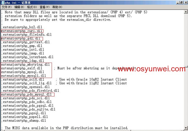 以下php扩展模块,根据需要选择开启,取消前面的分号为开始相应扩展模块