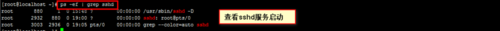 2、然后确保是否都开启了sshd服务。执行命令"ps -ef | grep sshd" 查看是否开启。具体展示如下图所示。