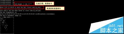 6、同样在B机上我们执行命令"ssh-keygen -t rsa -P """,生成一对公钥、私钥。具体操作如下图所示。