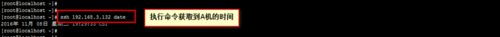 8、然后同样我们在B机(192.168.3.159)上执行命令“ssh 192.168.3.132 date”不需要输入A机密码就可以得到A机的时间。具体操作如下图所示。
