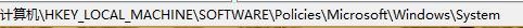 2、定位到注册表项:HKEY_LOCAL_MACHINE\SOFTWARE\Policies\Microsoft\Windows\System