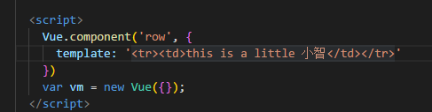 以上大家都懂,这边就不多说,回到代码里,有时候我们需要 tbody 里面每一行是一个子组件,那我们代码可以怎么写呢?我们可以这样写,定义一个全局组件,如下:
