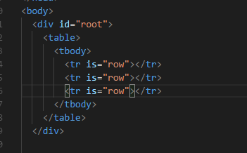 我们可以在 tr 多一个属性is 让它等于 row, 如下: