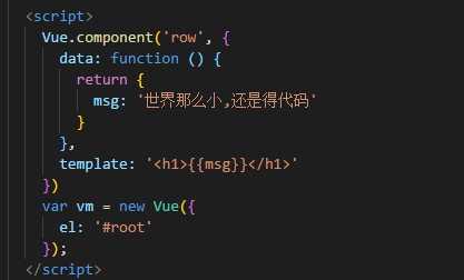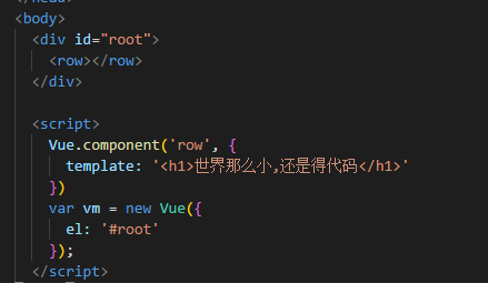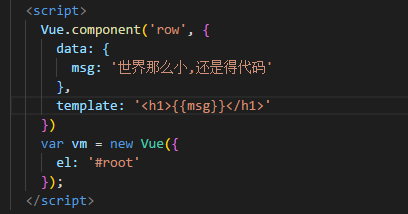 我们定义了一个组件 row,里面有段文本,如果我们想把这段文本单独提取出来用变量表示 ,那么你很有可能会这样写: