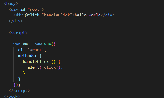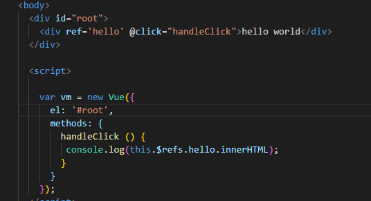 运行,点击弹出click,没毛病。vue 不建议我们在代码里面操作 Dom, 但是在处理一些极其复杂的动画效果,我们还真得操作 Dom, 那么在 vue 中如何操作 Dom 呢? 我们可以通过 ref 引用的方式,如下: