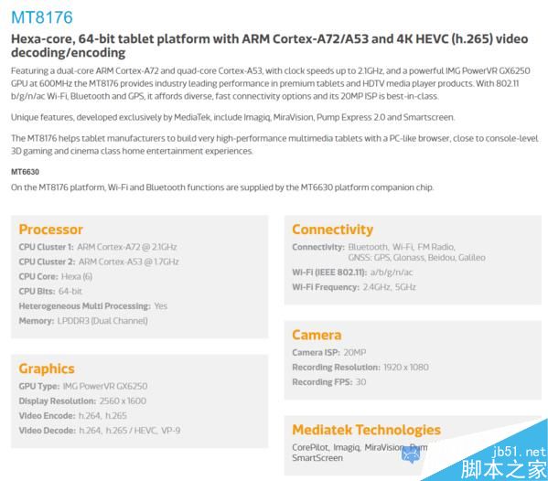 到了小米平板3这一代,小米所选用的是一颗来自联发科,型号为MT8176的6核心处理器。这颗处理器使用28nm工艺打造,拥有两颗2.1GHz的Cortex-A72核心和四颗1.7GHz的Cortex-A53核心。