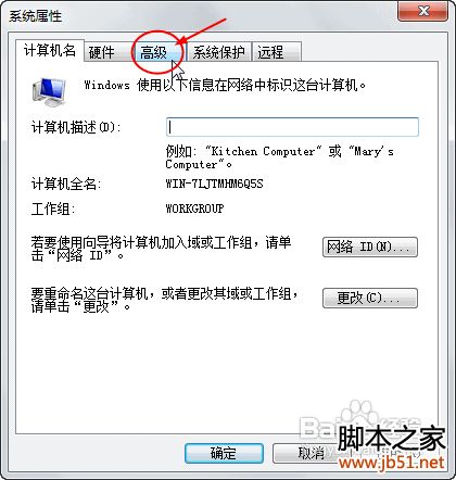 打开“高级系统设置”后,找到选项卡“高级”,并打开: