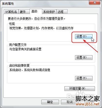 在“高级”选项卡中找到“性能”的选项“设置”: