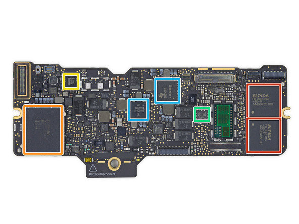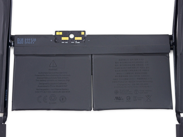 全新 MacBook 电池的连接器隐藏在主板下,这种设计与 iPad 相似。