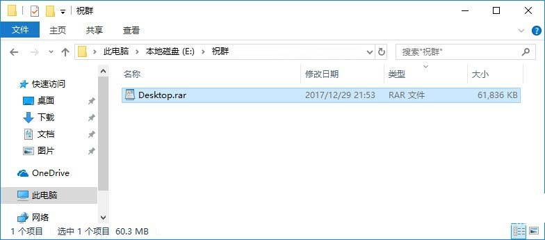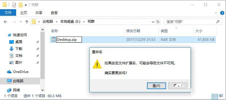 三、之后就可以显示文件后缀名称了,接下来只要重命名,并修改文件后缀就可以改类型了,如下图中的 Desktop.rar 改为 Desktop.zip 就可以了。