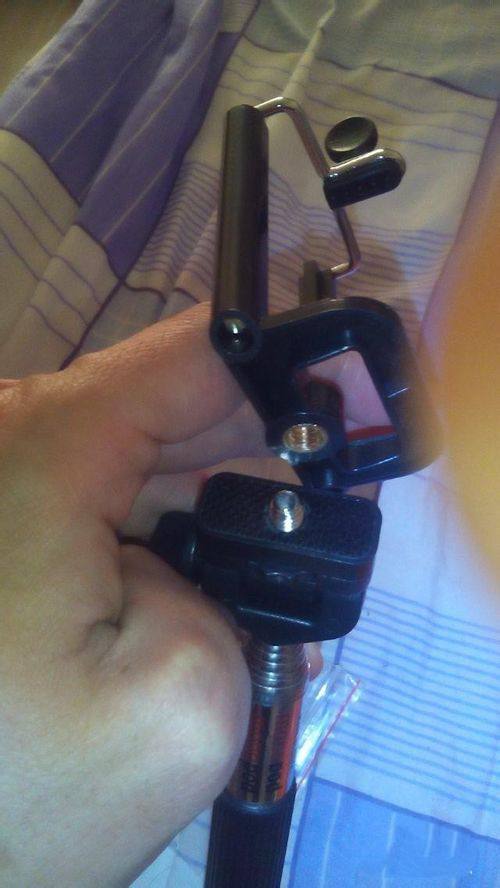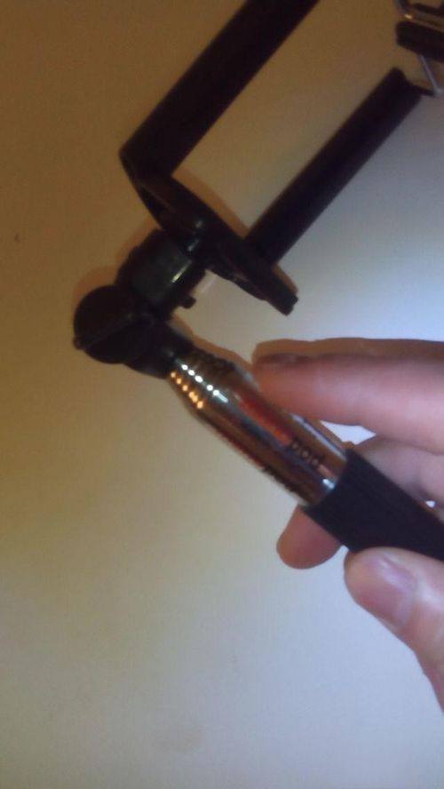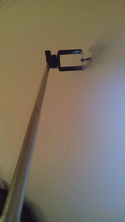 6、第六步放好手机以后我们可以看到伸缩架顶端那里可以上下拉伸的,你可以根据自己的爱好调节长度然后就可以自拍了,简单吧