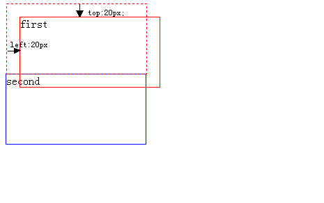 #second{width: 200px;height:100px;border: 1px solid blue;position: absolute;top:20px;left:20px;}