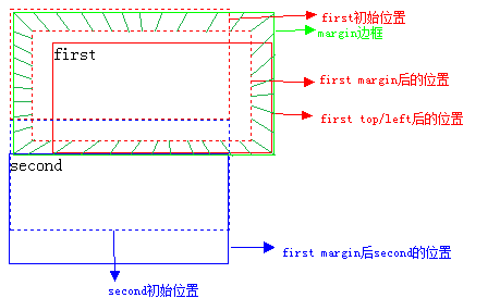 #second{ width: 200px;height: 100px;border: 1px solid blue;position: absolute;top :0;left : 0;}