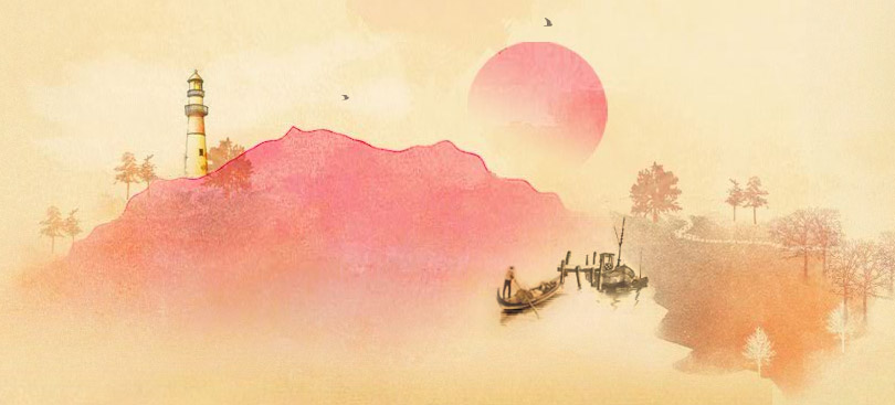 若背景为具象的、视觉重量较重的,比如地图?风景?等,需要注意的是版面的搭配,背景从哪里开始到哪里结束。颜色是否与前景物体的颜色冲突或相近。
