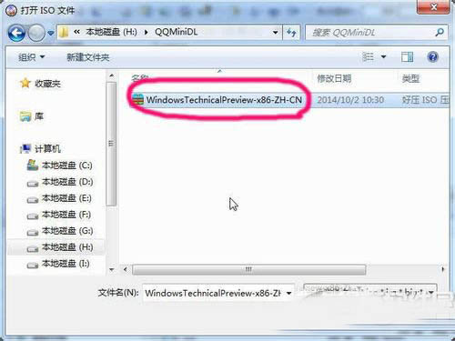 4、选择下载回来的win10系统ISO文件。