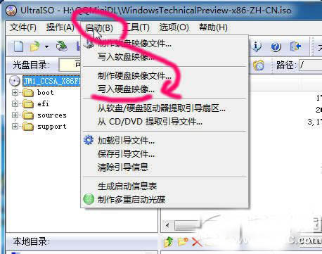 5、点击菜单,“启动”->“写入硬盘映像..”。