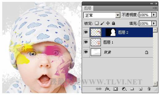 (9)执行“编辑”→“选择性粘贴”→“外部粘贴”命令,在“图层”调板中新建“图层 3”,并创建图层蒙版,遮盖选区以内的图像,如图1-147、1-148所示。