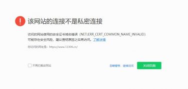 因为12306有一个错误证书,我们那它的网站做测试会出现下面的情况,证书不是官方证书,浏览器会识别出一个错误
