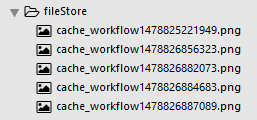 改进后的服务器程序就能允许用户上传重名文件了,以上传 5 次名为 'cache_workflow.png' 的文件为例,服务器的文件存储地址中会出现 5 个名称都以 'cache_workflow' 开头但时间戳不同的文件:
