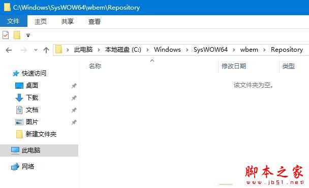 Win10 32位的用户打开:C:\Windows\System32\wbem\Repository 打开后将里面所有的文件删除;