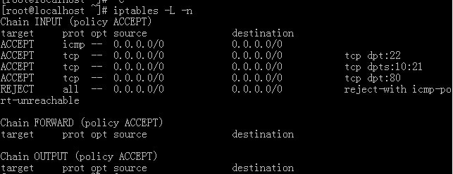 2、iptables -A INPUT -j REJECT一定要使用 A 命令追加到规则末尾,不能使用 I 命令插入,使拒绝操作在最后生效;
