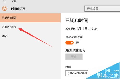 4、点击左边的“区域和语言”