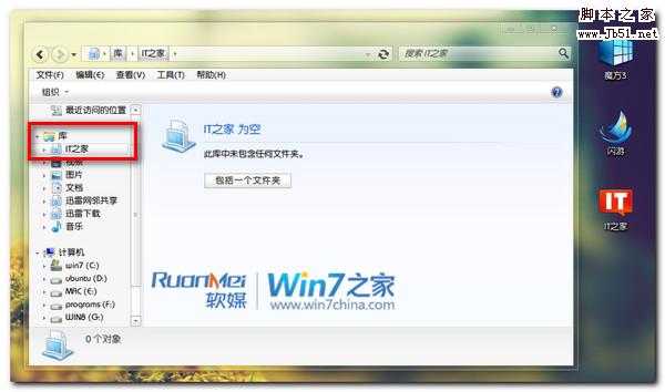 简单操作如下:在Windows7的库区域,右键单击,新建库。然后给你的库起个名字,往后打开Windows7的库你就可以在库里直接找到它了。