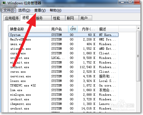 我们先打开任务管理器,点击查看 --- 选择列