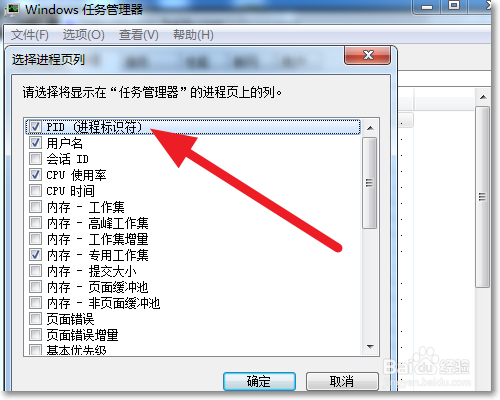 将 进程PID 勾选 上 ,此时我们就可以在任务管理器里边看到进程的PID了