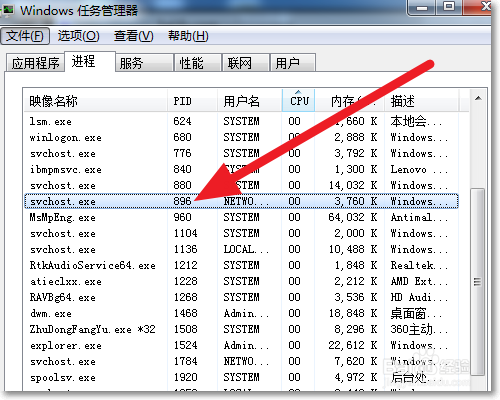 如果是Windows 7 系统里,还可以看到这种进程的服务描述,如下图