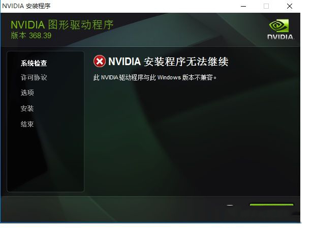 可以看到屏幕上的显示的是“NVIDIA驱动程序与此windows版本不兼容”,首先想到的肯定是否下错了驱动,众所周知,NVIDIA的驱动是分64位版本和32版本,如果下载的驱动版本与系统的版本不同就会出现这样的情况。