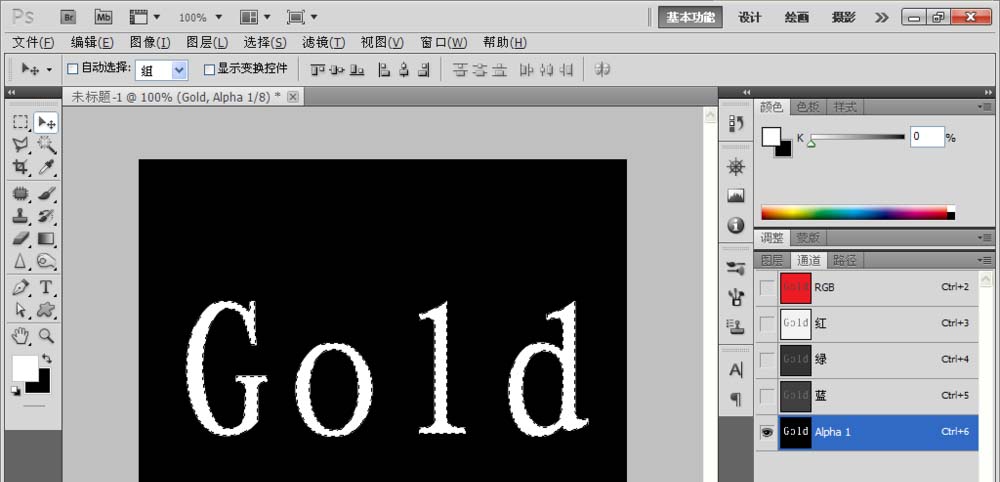 2、选择横排文字工具,然后输入文字,文字的大小设置为200点,然后按住crl键点选字体载入选区,在通道调板上,创建Alpha通道,然后选中该通道,如图