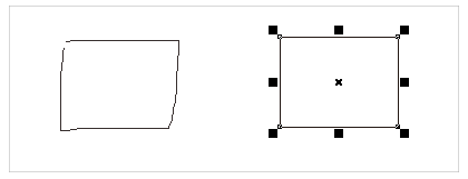 2. 从属性栏中的“形状识别等级”和“智能平滑等级”列表框中选择识别等级和平滑等级(形状识别等级越高检测到的图形接近正规图形;智能平滑等级被检测到的线条轮廓越平滑。)需要注意的是,绘制完成后无法更改该形状的等级。如下图所示(左)为两者都设置为“无”等级时;(右)为当两者都设置为“最高”等级时。