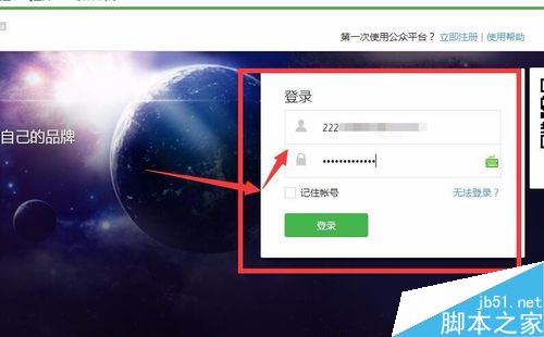 当我们进入“微信公众平台”我们输入登录名和密码(这里已经标注出来了,登录名有邮箱,微信号,QQ号码)