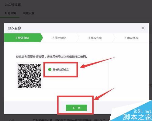 当我们点击修改名称的时候,这时候就会跳出了一个页面来,首先要我们用微信(管理员的私人微信)扫描验证!